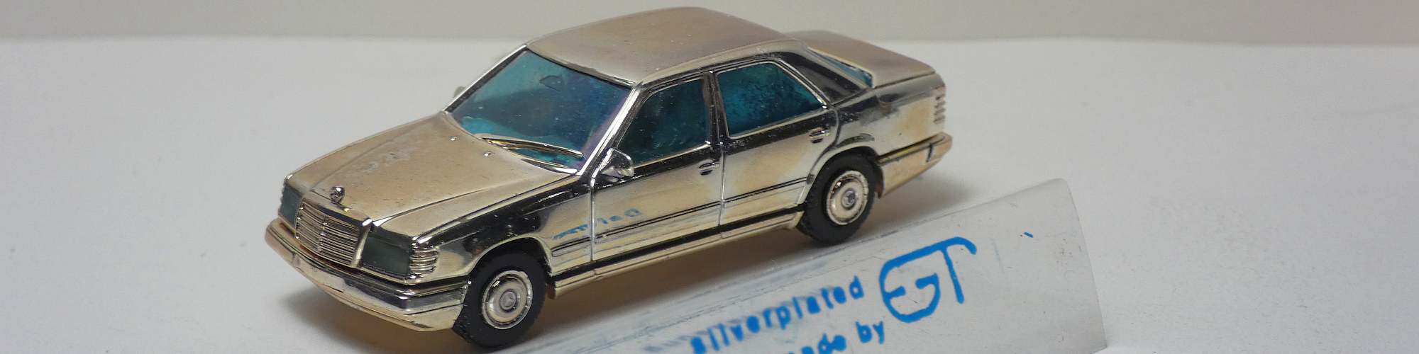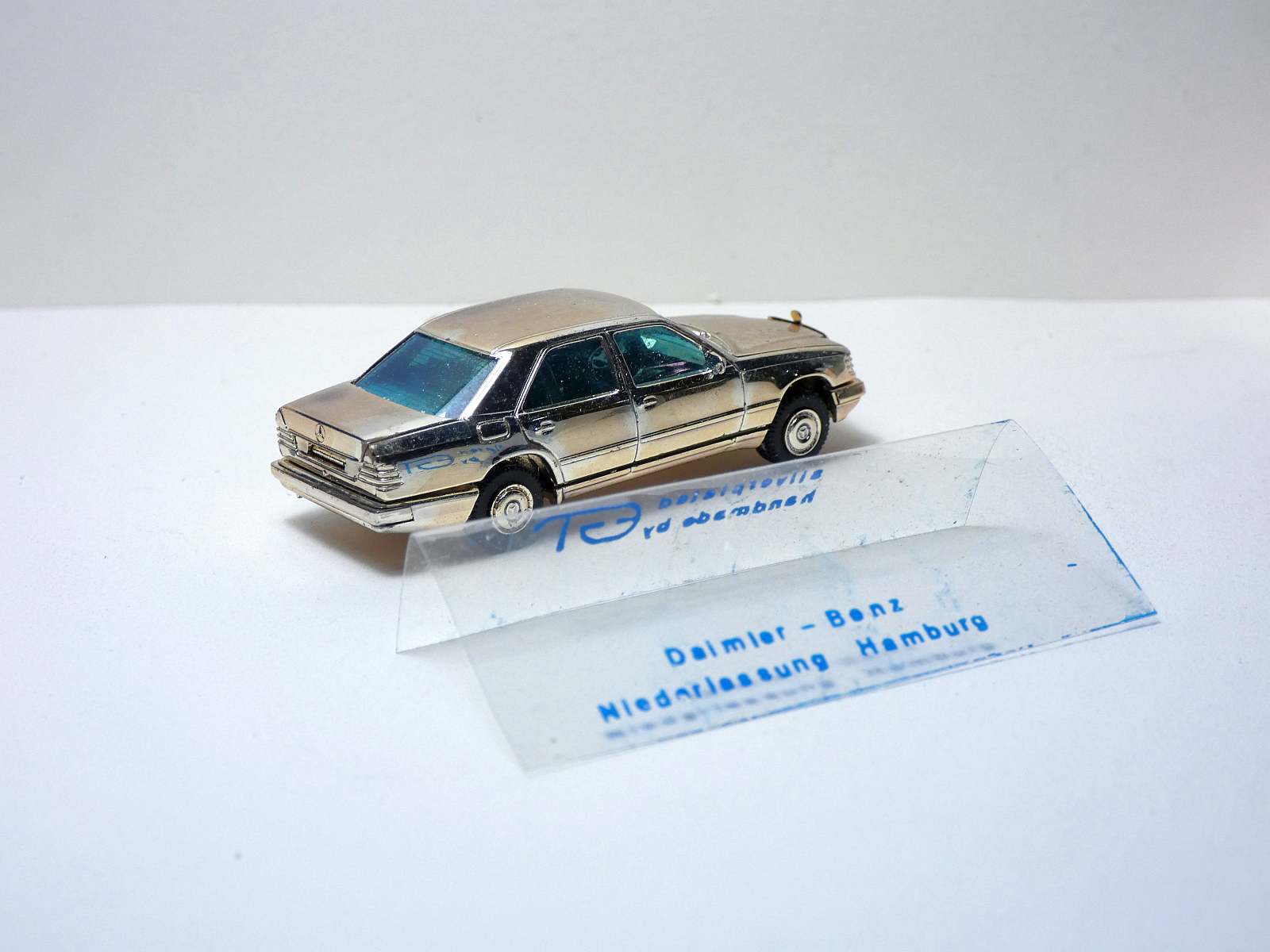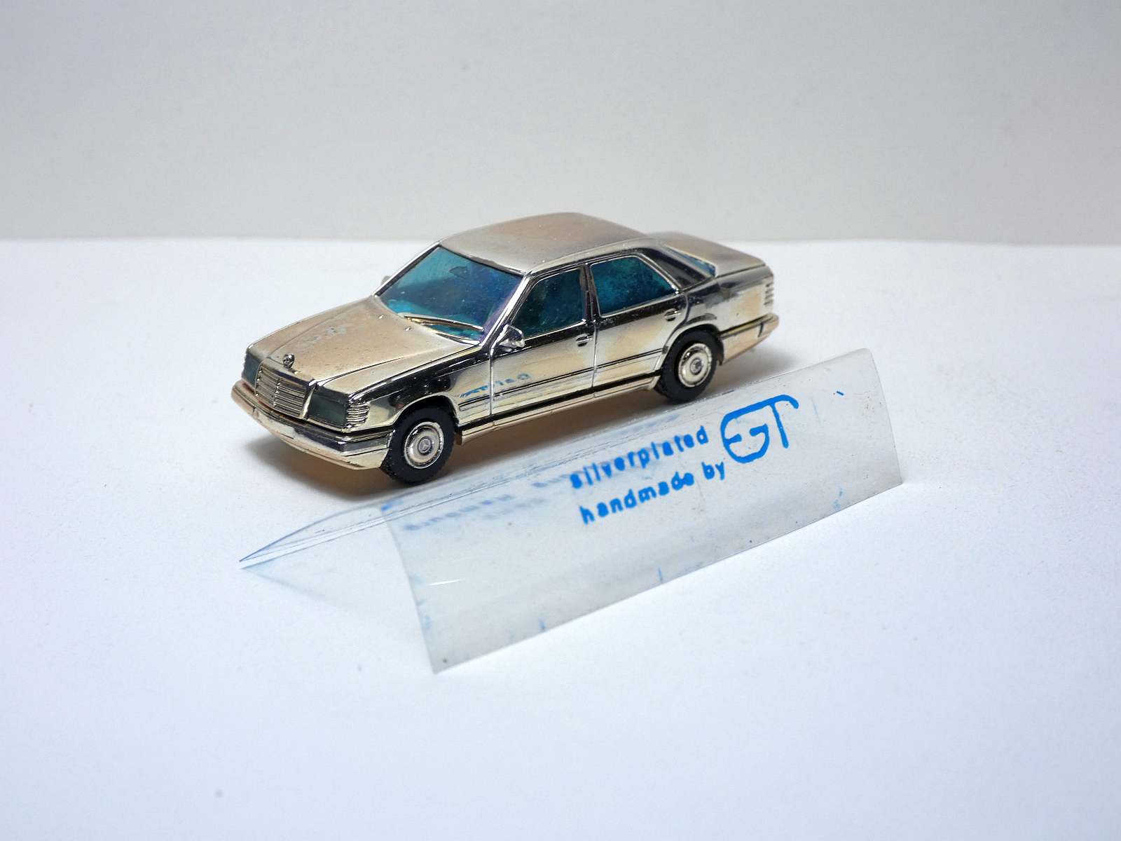 Der Mercedes-Benz W 124 in versilberter Ausführung.