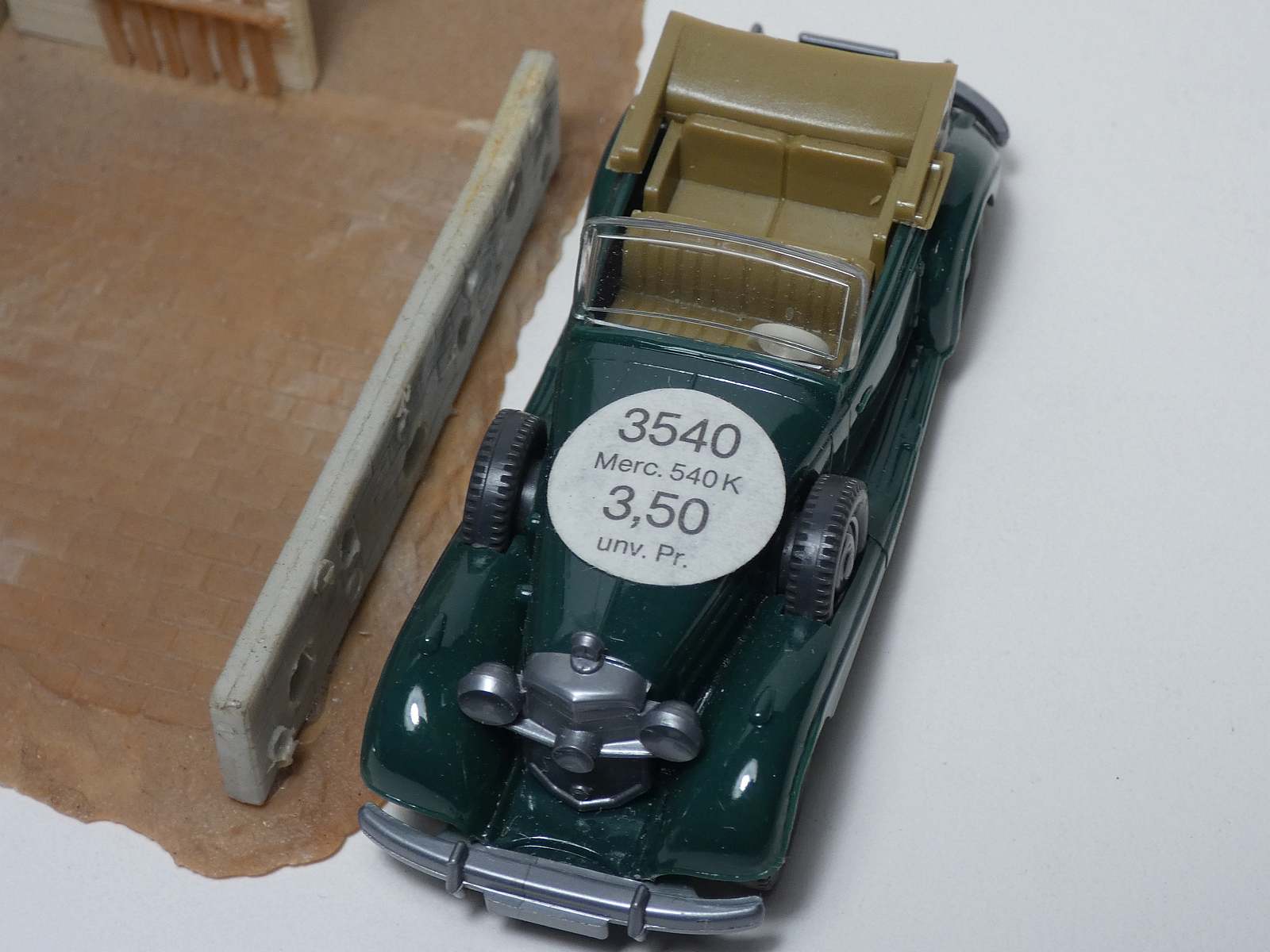 creme, IE braunrot, Verdeck braunrot mit einem Roskopf Modell Mercedes Typ Stuttgart Cabrio in der Packung